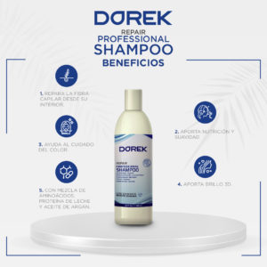 – Para lavar: Dorek: Repair – Professional Shampoo Liso Diamante: Diseñado para el tratamiento de cabellos con procesos químicos, resecos, opacos y sin brillo.