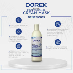 – Para tratar Frecuentemente: Dorek: Repair – Professional Cream Mask Liso Diamante: Tratamiento de última generación para la renovación capilar. Repara los cabellos sensibilizados y quebradizos aportando a su vez suavidad y brillo.