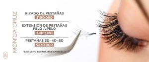 Te dejamos algunos de los servicios sobre cejas y pestañas que podrás encontrar en Mónica Cruz: